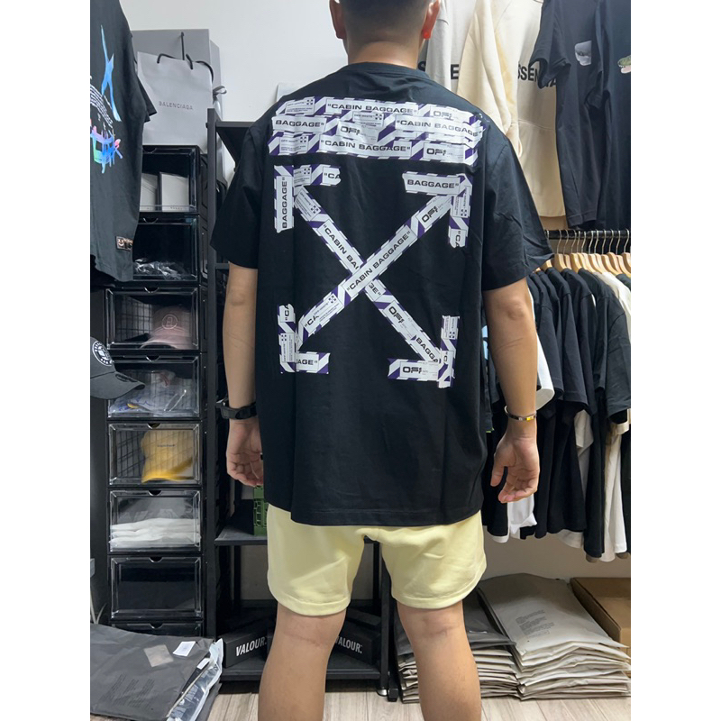 [JSHOPSPREE] Off White Airport Tape and Acrylic Arrow Tee Black