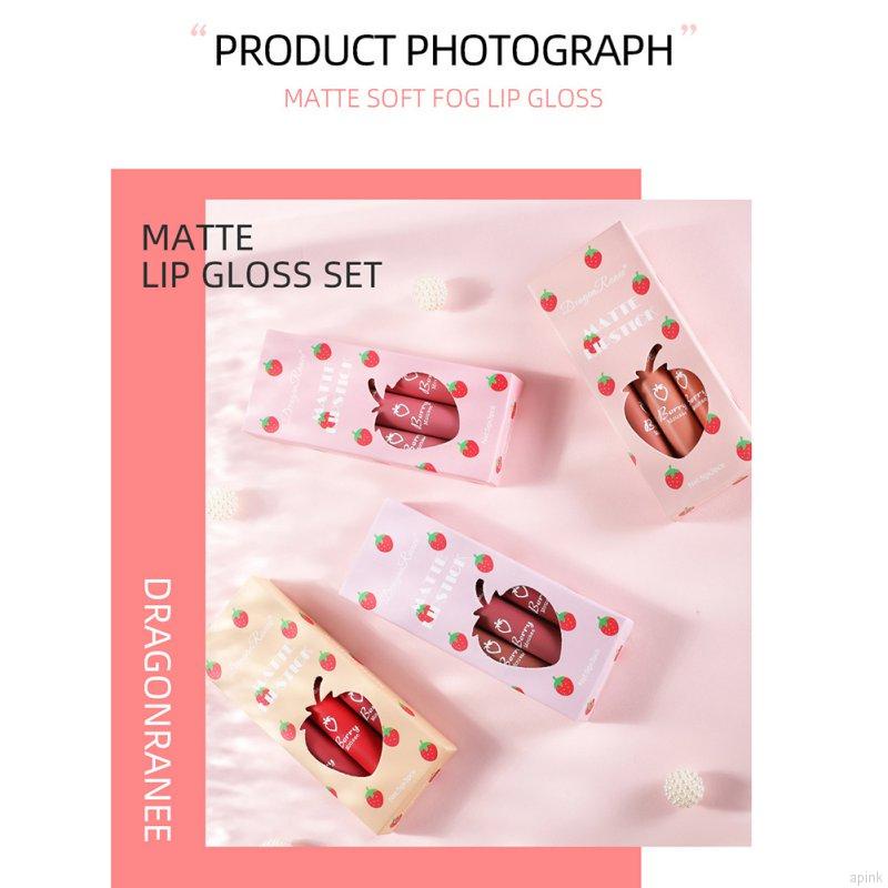 3Pcs Matte Lip Gloss Set Long-lasting Waterproof Smooth Mousse Velvet Liquid Lipstick Kit