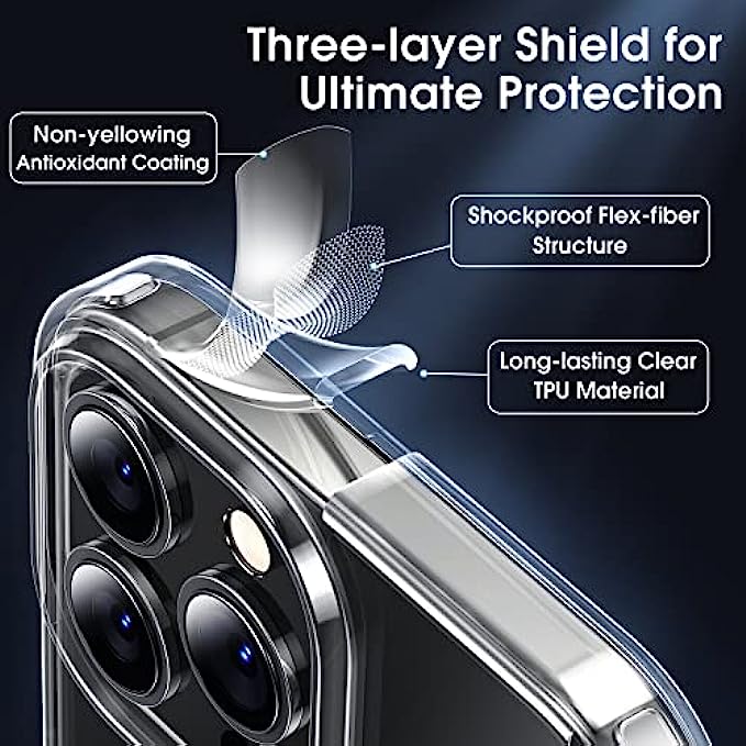 • [Crystal Clear & Never Yellow]: Using high-grade Bayer's ultra-clear TPU and PC material, allowing you to admire the original sublime beauty for iPhone 13 Pro Max while won't get oily when used. "Never yellow" thanks to the nano-grade diamond anti-oxidation coating which can effectively resist 99.9% of yellowing caused by ultraviolet rays and sweat.