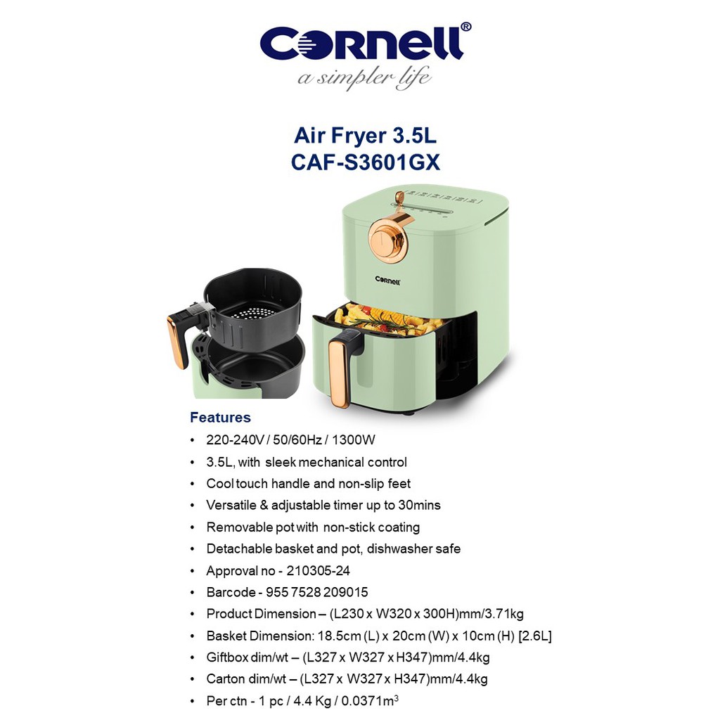 Cornell 3.5L Air Fryer with Detachable Basket 1 Year Warranty Shopee exclusive