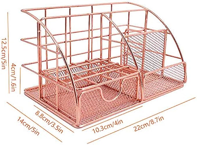♥Versatile Use:One fit all! Your file, letter, pencil, scissor, pen, stapler can all be stored in our mesh desk organizer. Moreover, besides being a stationery holder, the organizer could also become your cosmetic holder. For example, you can put your eyebrow pencil, eyeliner, makeup brushers in the organizer.