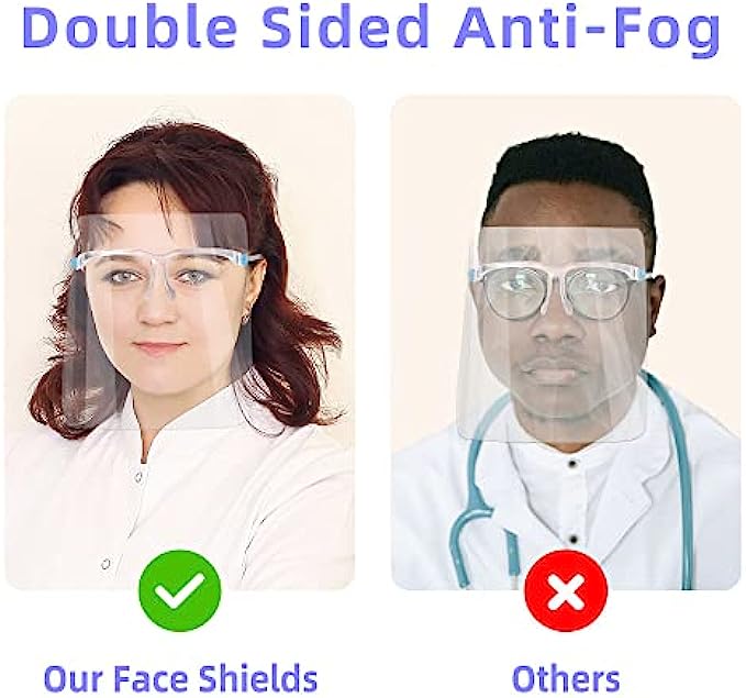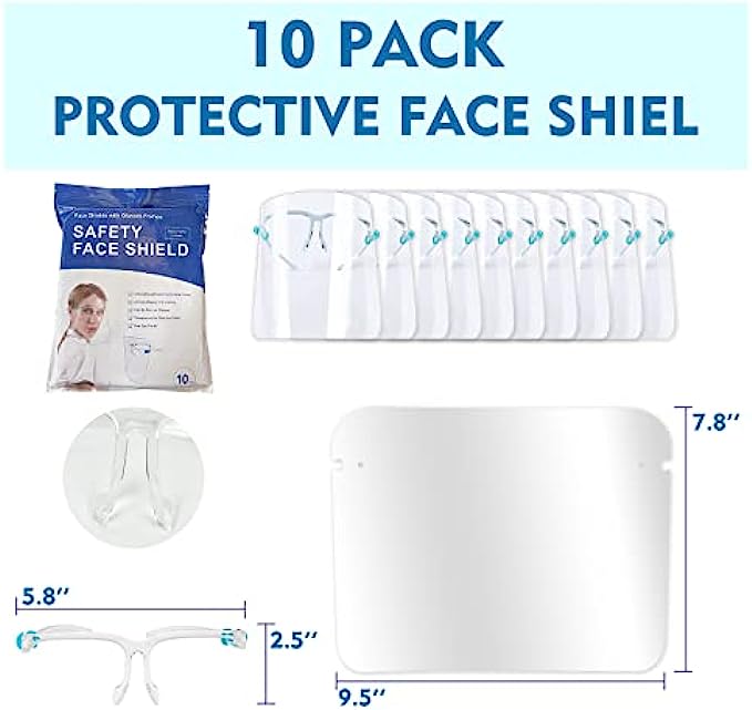 Anti-fog protective full face shield: Safety face shield lightweight & comfortable, The face shield with glasses over glasses have 180 degrees of full-face protection which effectively isolate saliva, spray, splatter, droplet, dust, oil and smoke and so on.
