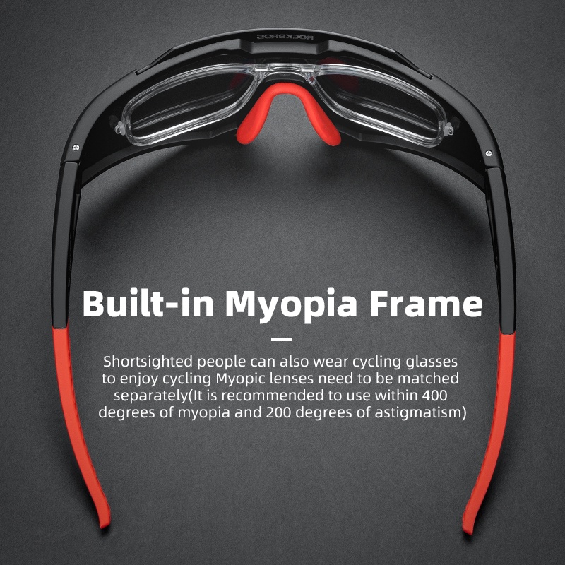 ROCKBROS Cycling Glasses Photochromic Polarized Built-in Myopia Frame Men Women Windproof Bicycle Outdoor Sports Glasses