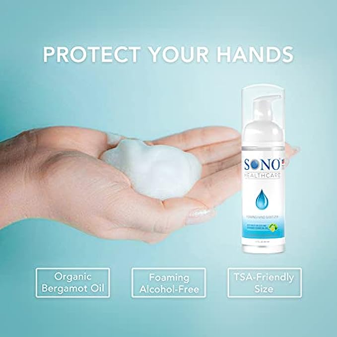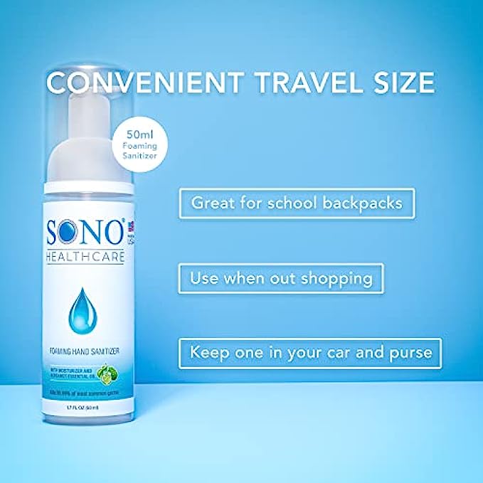SONO TSA Approved Airplane Travel Essentials Alcohol Free Foaming Hand Sanitizer, Perfect For School Supplies With Refillable Bottle