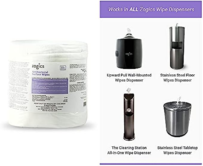 EPA DISINFECTANT WIPES: Zogics EPA-registered disinfecting surface wipes are created with a powerful antibacterial formula to kill 99.9% of germs, of germs, viruses, and bacteria in just 15 seconds, and is effective against H1N1, MRSA, Flu, Strep, Salmonella, HIV-1, E coli, VISA and VRE, and many more. MULTI-SURFACE USE: Our anti-bacterial wipe is the ultimate tool to thoroughly clean and disinfect a variety of surfaces, including countertops, door handles, gym equipment, and plenty of other hard, nonporous surfaces. These surface disinfectant wipes are strong and made with durable fibers; they get the job done and leave behind a crisp, fresh scent. SAFE AND EFFECTIVE: Our wet wipes are saturated the perfect amount with our unique formula that is made without the use of bleach, alcohol, and phenol while still being highly effective at cleaning and sanitizing a space. LARGE, DISINFECTING WIPES BULK: Zogics surface sanitizing wipes are large wipes made from durable fibers. Each bulk wipe rolls fit most standard dispensers, making them a necessary cleaning tool for everything from gyms to nursing homes, hospitals, schools, and offices. PROFESSIONAL, AFFORDABLE SANITIZING SOLUTIONS: Zogics was created with our customers in mind. Our entire catalog of cleaning products focuses on bringing the highest quality, professional products at affordable prices to industries ranging from fitness and health to government to hospitality.